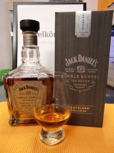 Aber mit so gewöhnlichen Kram geben wir uns jetzt nicht weiter ab, denn die heutige Flasche ist eine besondere Form des normalen Single Barrels: Der Jack Daniel’s Single Barrel 100 Proof, bottled in bond. Im Gegensatz zum normalen Single Barrel hat dieser einen erhöhten Alkoholanteil von 50% gegenüber den üblichen 45%.